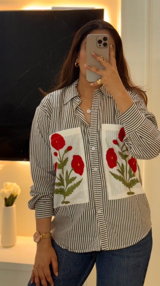 The POPPY print shirt is a vibe with its bold, bright florals, making you stand out effortlessly. It's comfy, stylish, and perfect for leveling up your wardrobe.