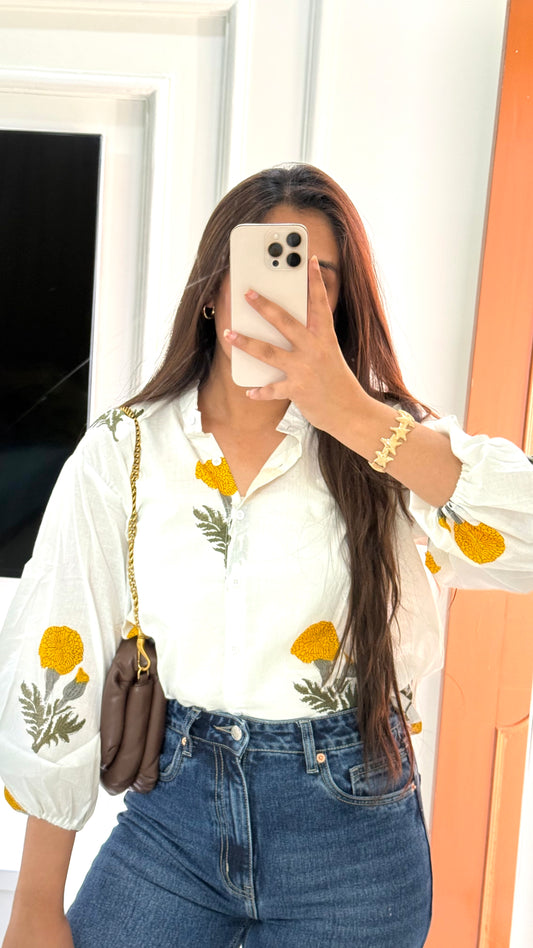 Jaipuri yellow mughal butta shirt