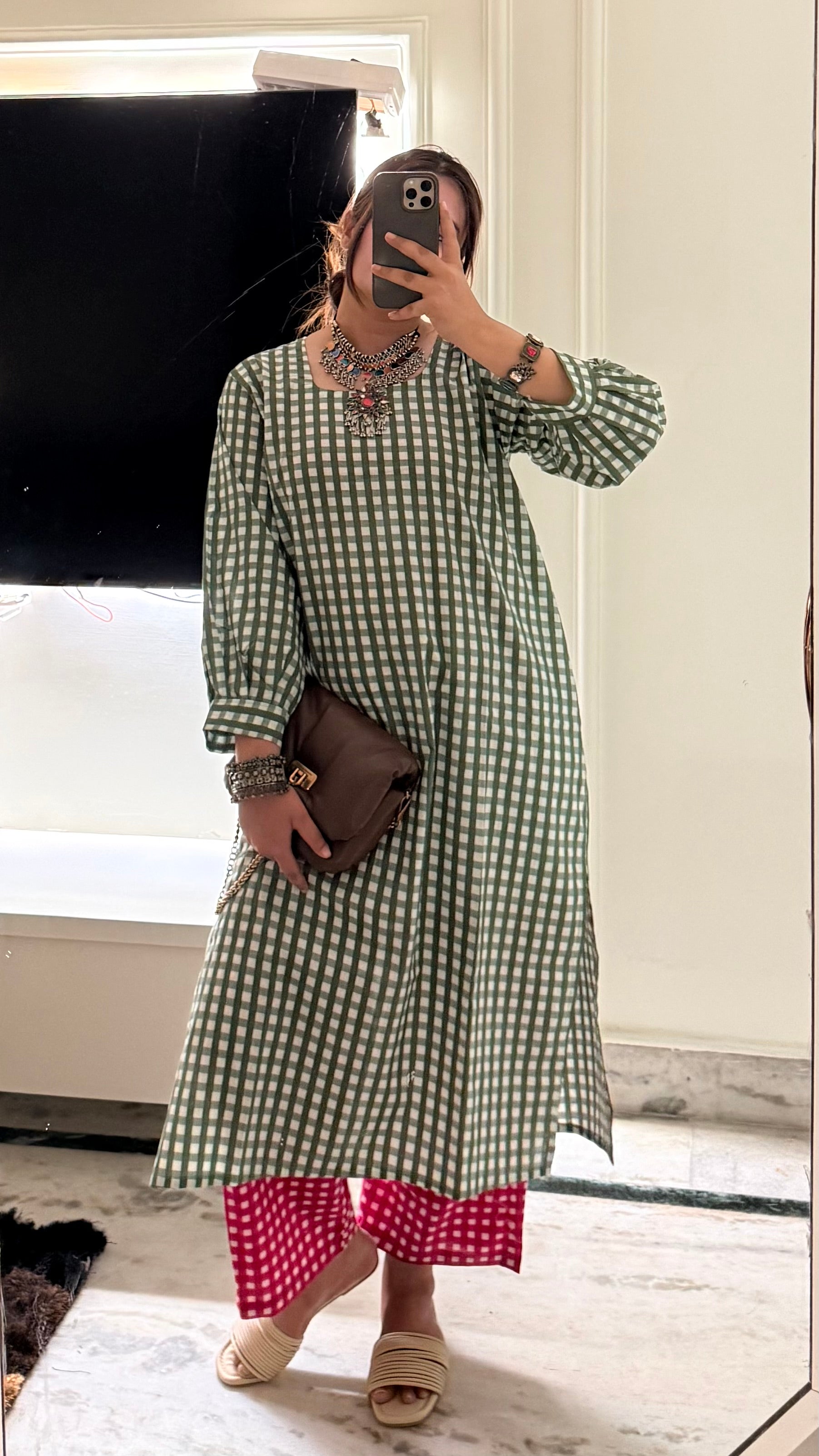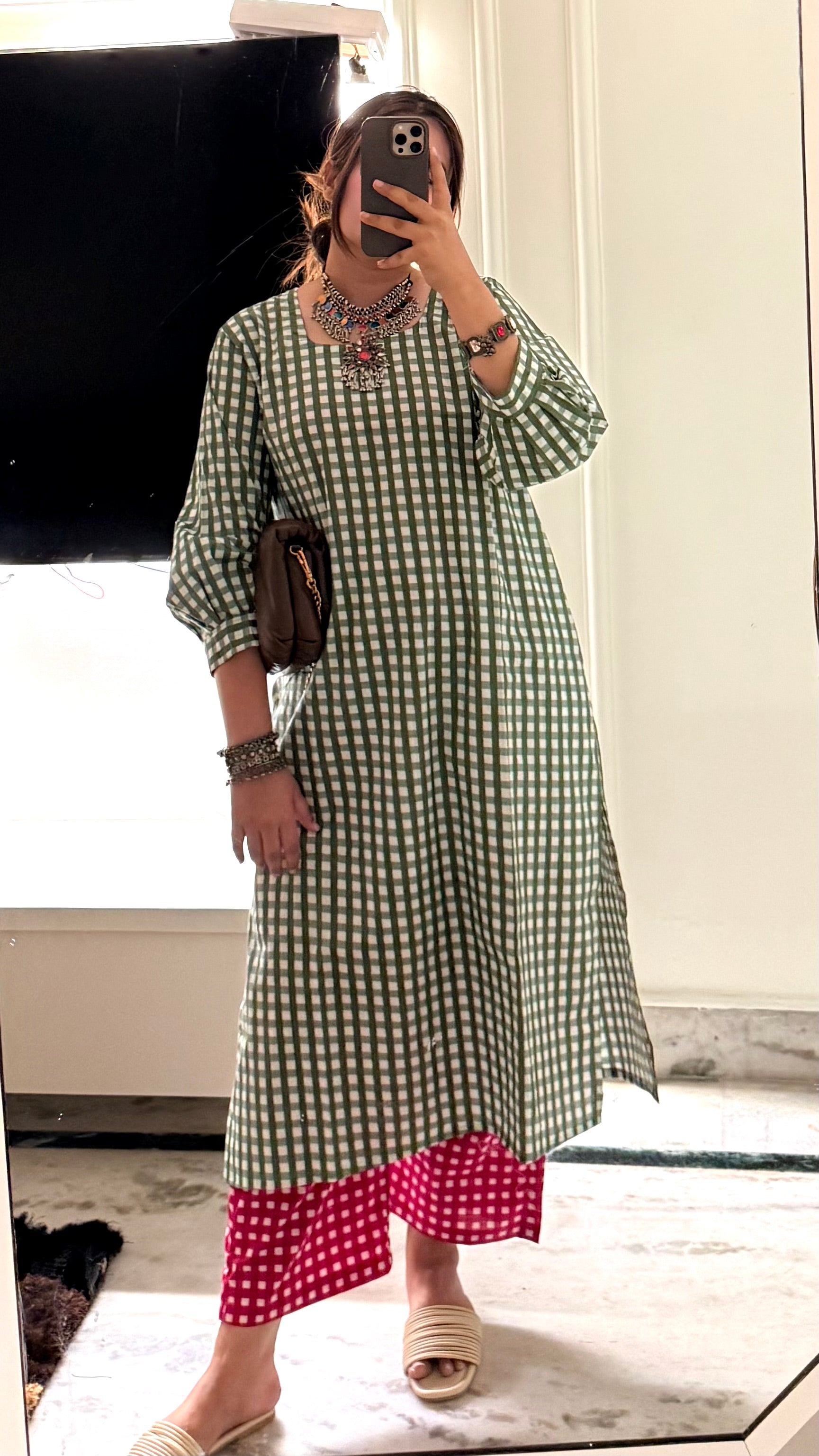 The Sabeena set features a pure cotton fabric, ensuring breathability and comfort. The kurta measures 46 inches, providing ample coverage, while the 38-inch bottom offers a balanced silhouette. This blend of length and material enhances wearability for various occasions, promoting ease of movement and all-day comfort.